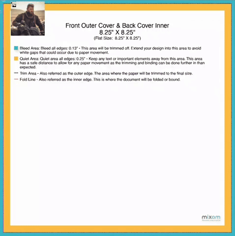 - Your inside pages will require the standard 0.125" bleed on all outer edges.