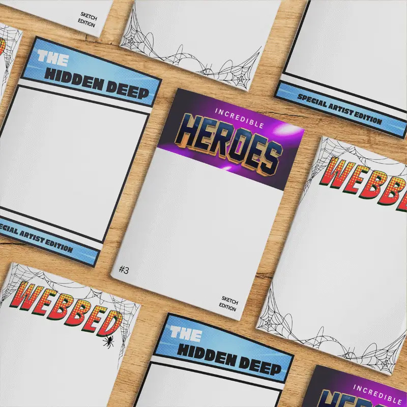 Comic Sketch Covers are a unique variant of comic book covers, specially designed for artists to hand-draw custom cover art. Printed on thick, uncoated paper stock, these blank comic sketch covers offer the perfect surface for detailed sketches without the worry of ink bleed. Choose between vibrant full-color printing or atmospheric black-and-white to showcase custom illustrations or logos. Available in a range of custom sizes, these covers are ideal for special edition prints or personalized collectibles. Whether you’re preparing for a convention or designing a limited-edition release, Comic Sketch Covers make the perfect personalized canvas to elevate your comic book.