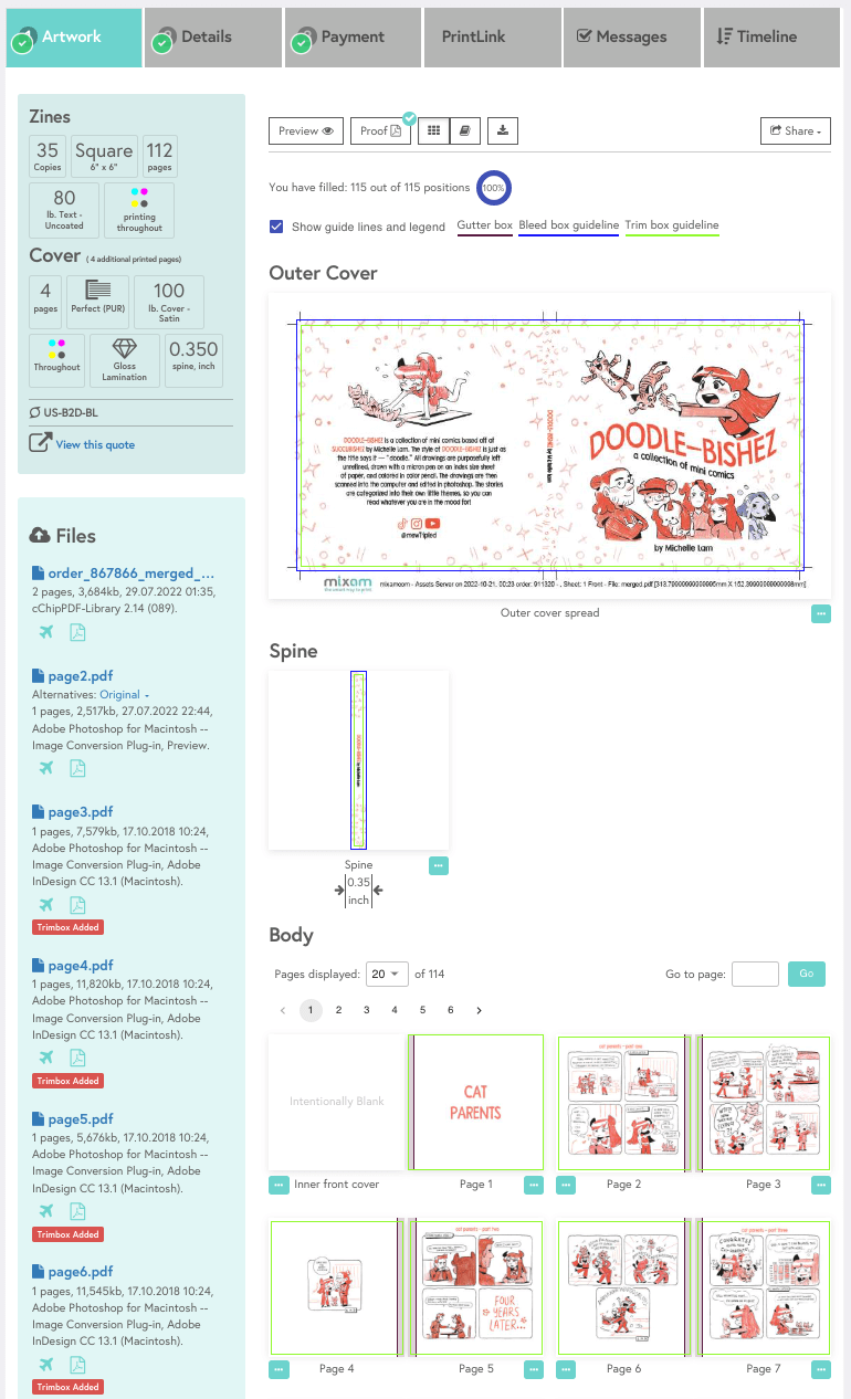 Note: Before reuploading artwork files, remove existing artwork files to ensure the new files are uploaded correctly. Once reuploaded, please check to ensure your page sequence is correct.