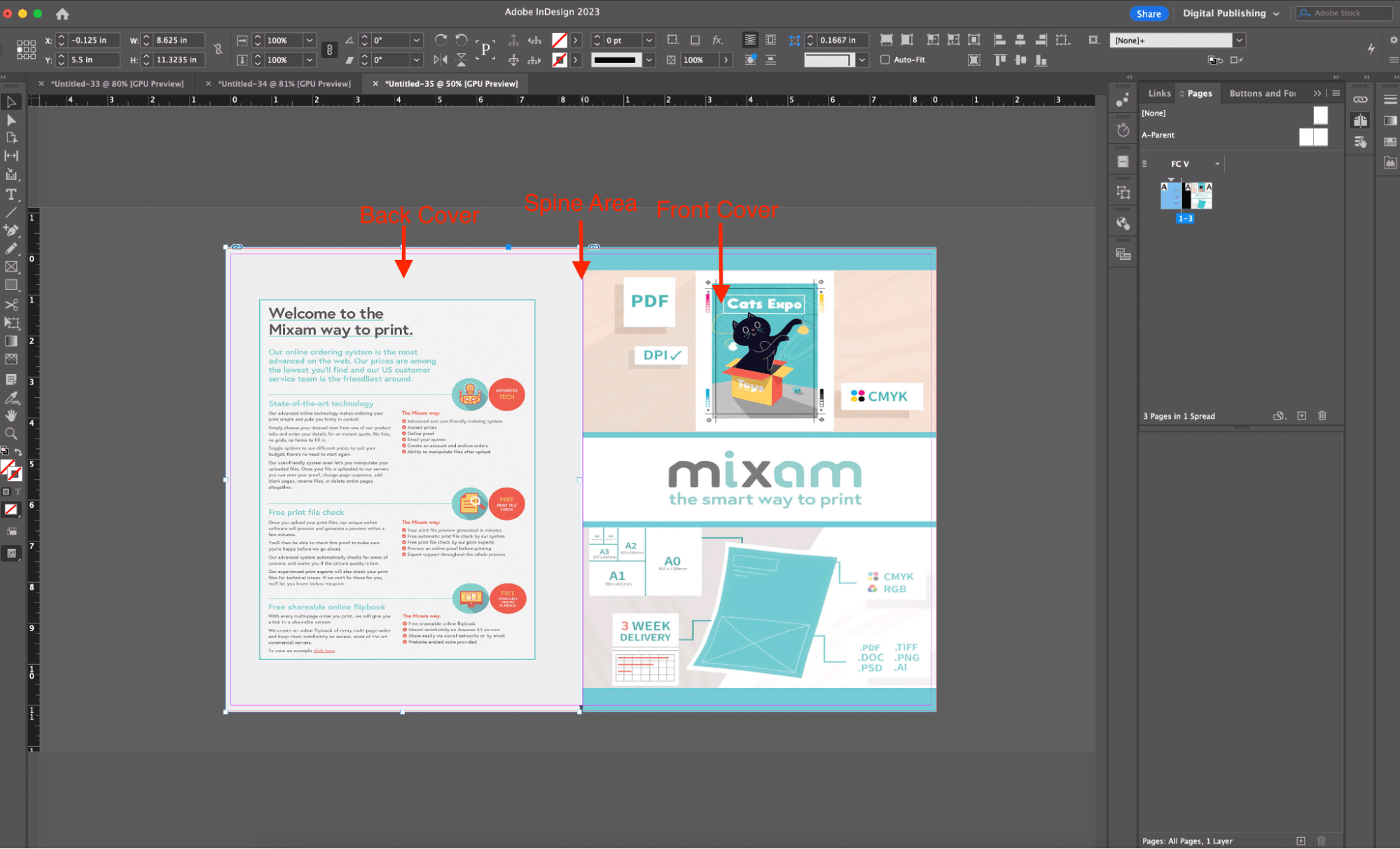 - Centre the spine on the spread and ensure that the text is legible and fits within the spine width.