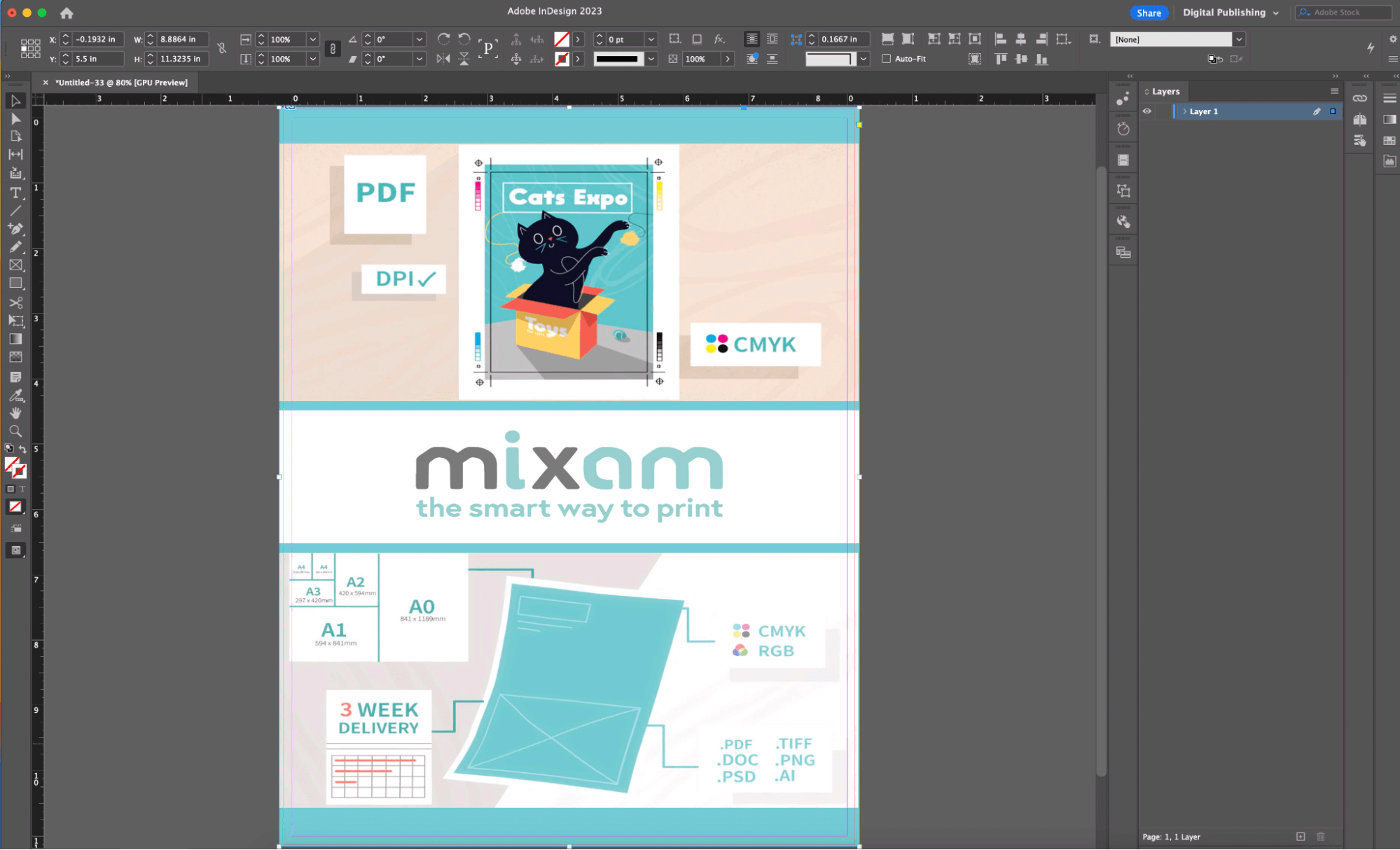 - To export your files, go to File > Adobe PDF Presets > Mixam .joboptions file > Export.