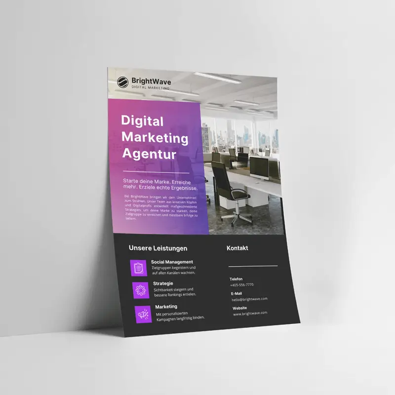 Unser Druckservice verwandelt deine Gedanken in ein professionelles Design. Wir gestalten genau das, was du brauchst: Ein ungebundenes Blatt Papier, das deine Kreativität und unsere Druckqualität perfekt vereint. Deine Ideen. Unser Können. Ein starkes Ergebnis.
