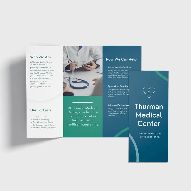The Roll (Letter) Fold is an easy way to display large quantities of text and graphics. It easily separates information into equal folded panels for digestible reading experiences. We fold prints twice to produce 3 sections and 6 printed panels.