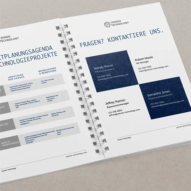 Lass das endlose Scrollen und lästige Herunterladen hinter dir mit gedruckten Handbüchern, die alle wichtigen Infos auf den Punkt bringen. Egal ob Schulungshandbuch für dein Team, Kursleitfaden für deine Workshops oder Bedienungsanleitung für Produkte: Mit flexiblen Optionen für Bindung und Veredelung gestaltest du Handbücher, die nicht nur nützlich, sondern auch professionell und stilvoll sind.