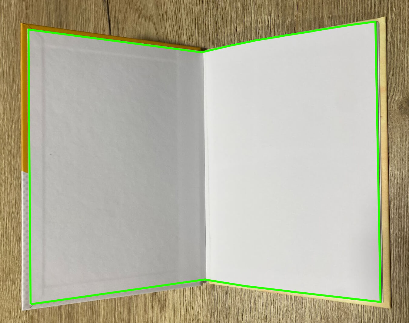 We print your cover artwork and wrap the additional 0.8" bleed around the backing board to form a printed case, some of which will be visible on the outer cover edges. The remaining bleed is tucked under the endpaper to create neat edges.