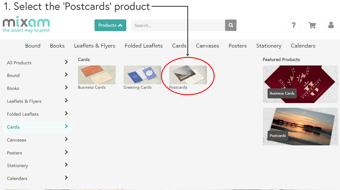 You need to order 5 lots of an item for your 4 artwork files. Go to the relevant product page, get a quote for 5 copies for one design and add it to your Cart. Click the 'Duplicate' button in your Shopping Cart to create the exact specifications again. Alternatively, click on Products in the Navigation bar, select the required item, or search for it in the search bar and enter your specifications in the Instant Quote Calculator. You can then click 'Add to Cart' again. Repeat this process until all required items are in your Shopping Cart, then click 'Continue' to begin uploading your files.