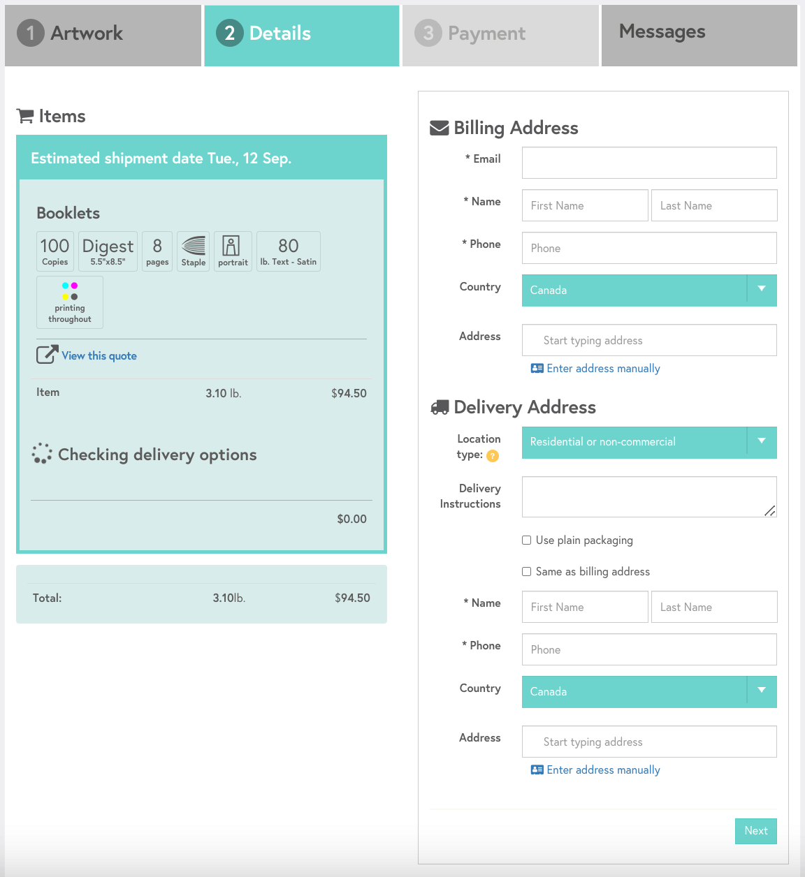 Start your order journey by getting a free quote from our Instant Quote Calculator on our Home page or every product page.