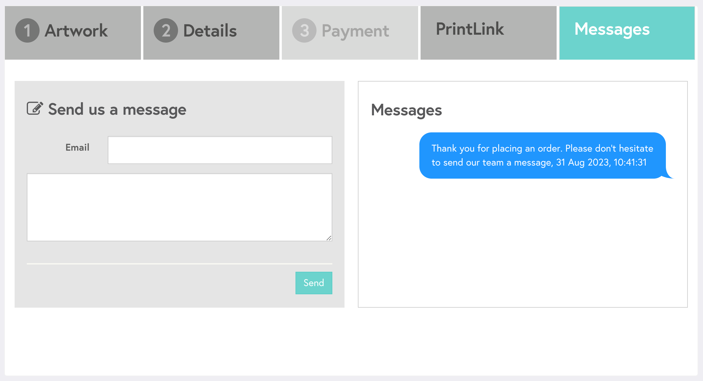 • Click on the Message tab in your order.