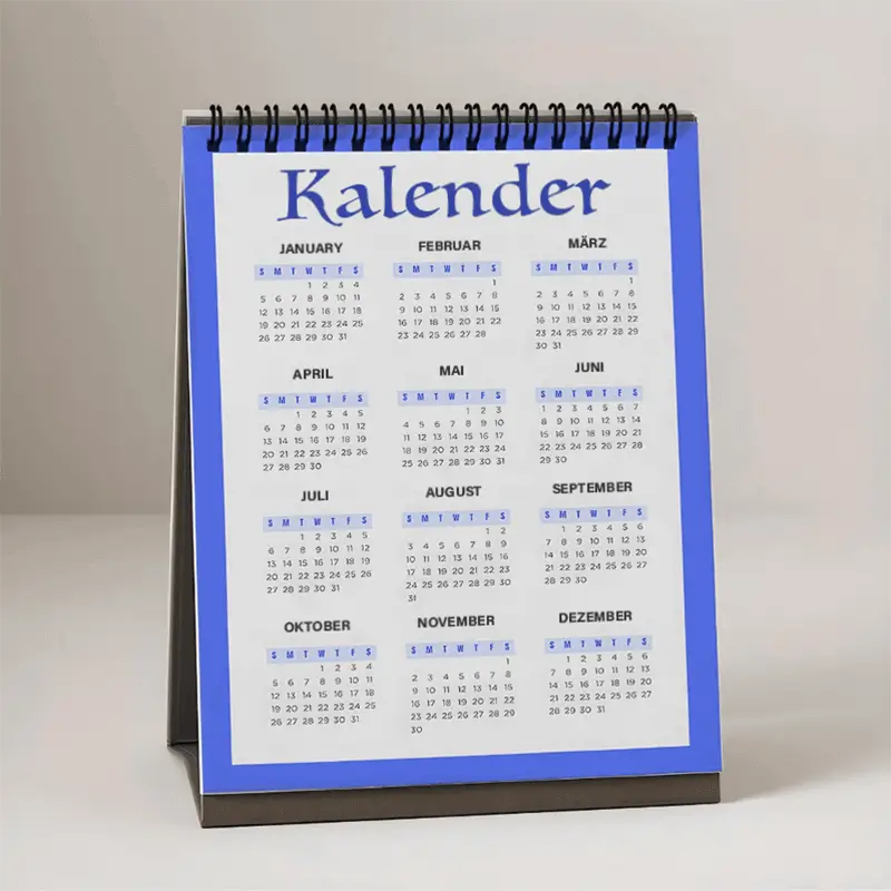 Tischkalender sind praktische Planungshilfen für den Alltag. Lade dir eine kostenlose Tischkalender-Vorlage herunter, um dein Design bequem vorzubereiten, oder gestalte direkt in deiner Bestellung einen Kalender mit eigenen Fotos, Layouts und Texten. Wir verbinden alle Seiten mit einer stabilen Wire-O-Bindung im Querformat, sodass du sie ganz einfach umklappen oder entfernen kannst.