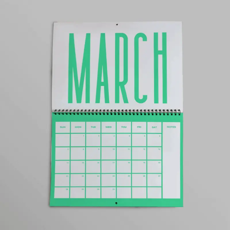 Print custom wall calendars that are as beautiful as they are functional. Download a wall calendar template to plan your design, or create one with your choice of photos, layouts and text using our in-order design studio. You also have a selection of binding options, including wiro and staple binding, as well as single-sheet poster calendars. Whether you create a branded wall calendar for office spaces or a wall calendar for family photos, we take care of the printing, packing and delivery so you can focus on getting ready for the events, holidays and milestones that matter.