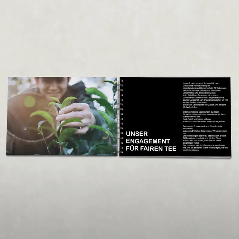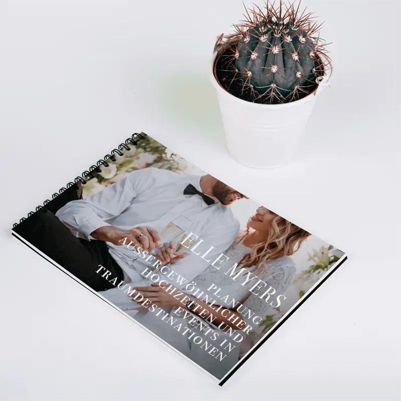 Die Wire-O-Bindung ist eine stilvolle und zugleich funktionale Lösung, ideal für geschäftliche und private Zwecke. Jede Seite wird mit stabilen, C-förmigen Drahtschlaufen gehalten, sodass sie sich komplett um 360 Grad umblättern lassen, flach aufliegen und der Buchrücken nicht beschädigt wird. Diese Variante bietet besonders viel Flexibilität, egal ob du Kataloge, Anleitungen oder andere Projekte drucken möchtest, das Ergebnis ist praktisch, langlebig und professionell. Du kannst dir kostenlose PDF-Vorlagen herunterladen, um dein Design optimal für den Druck vorzubereiten. Neben der Wire-O-Bindung stehen dir für deine Broschüren noch die PUR-Klebebindung und die Klammerheftung zur Verfügung.