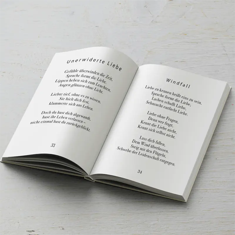 Also zögere nicht und lass uns loslegen! Mit unserer Leidenschaft für Qualität und Service bringen wir deine Gedichte in einer Form auf den Markt, die ihren Inhalt perfekt widerspiegelt.