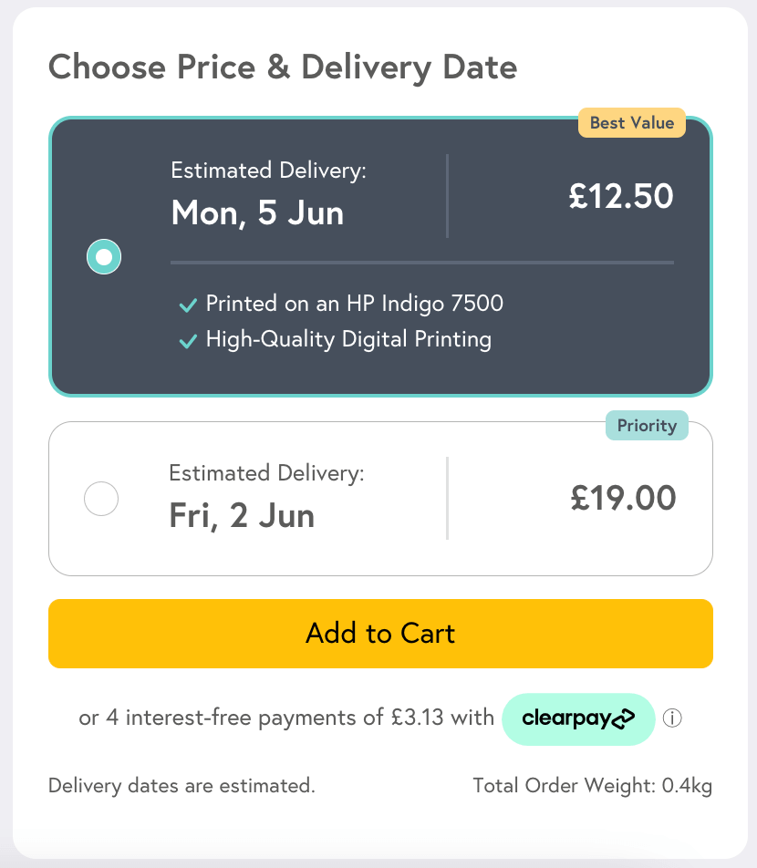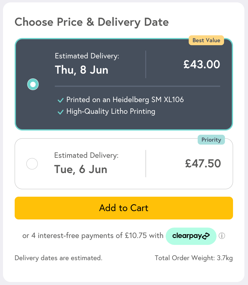 Our Instant Price Calculator provides estimated turnaround times and delivery dates, and reasons for delay vary. But we'll always inform you of any delays.