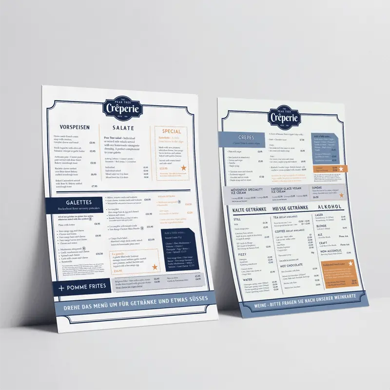 Der erste Eindruck zählt – besonders bei deinen Gästen. Deine Speisekarte ist mehr als nur eine Liste von Gerichten, sie ist deine Visitenkarte, die den Stil und die Atmosphäre deines Lokals widerspiegelt. Ob für gehobene Restaurants oder gemütliche Cafés, eine ansprechend gestaltete Karte lädt zum Verweilen ein und macht Appetit auf mehr.